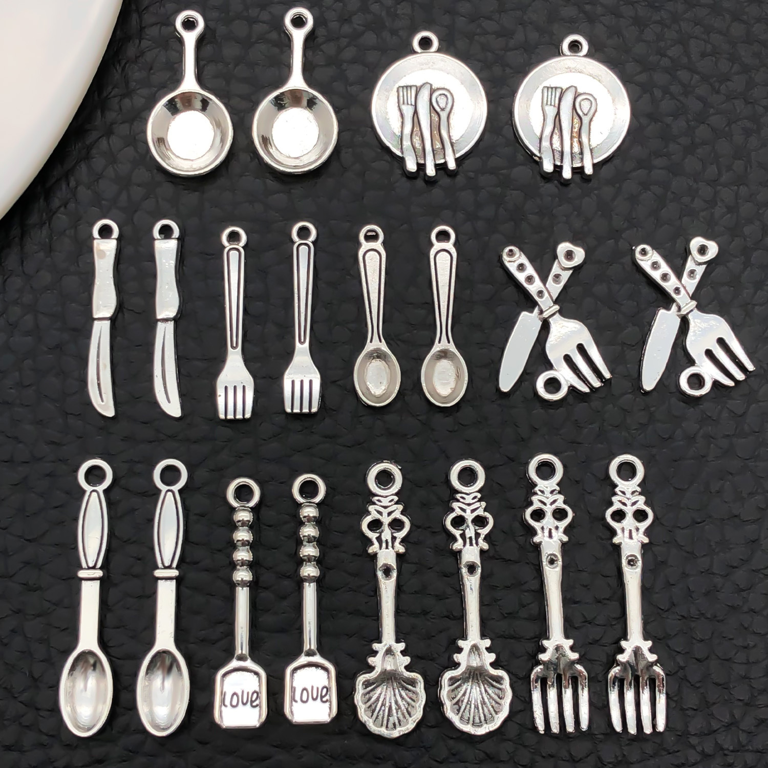 Cross-border explosions ancient silver alloy simulation tableware knife fork spoon series pendant pendant diy bracelet jewelry accessories