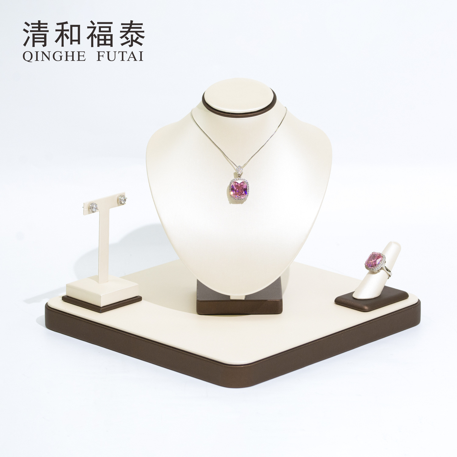 Customized Pu Jewelry Display Set Beige High-End Portrait Ring Earrings Display Window Display Tray Set