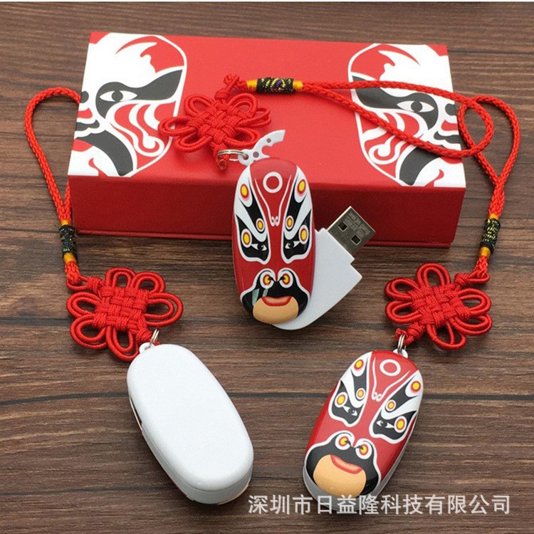 Manufacturer Wholesale Chinese Quintessence Peking Opera Facial Makeup U Disk USB Flash Drive with Signature Pen Set Creative USB Bookmark Three-Piece Gift Set