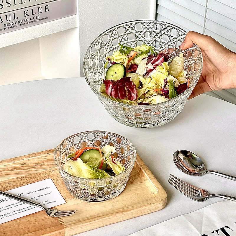 Internet Celebrity Gemstone Pattern Plate Accessible Luxury Simple European Crystal Glass Transparent Large Capacity Fruit Plate Salad Bowl Large