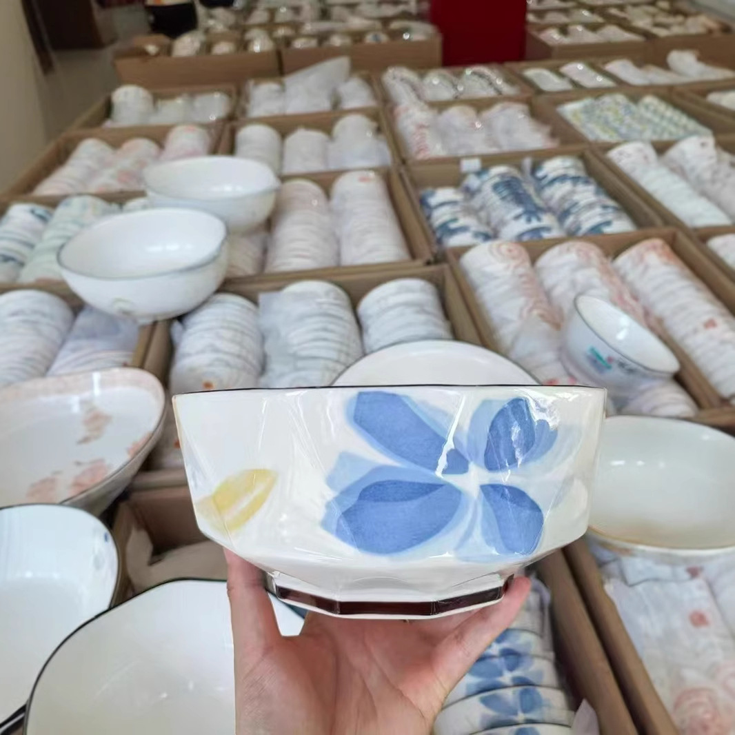 2025 New Ins Style 8inch Diamond Printed Bowl Underglaze Color Soup Bowl Large Ramen Bowl Boiled Fish Bowl