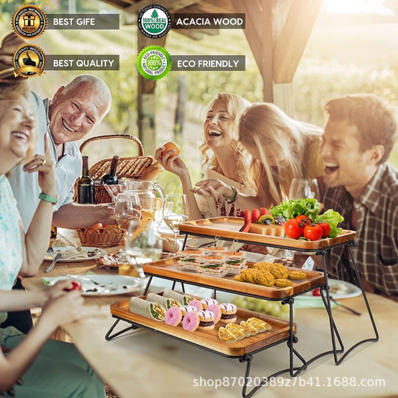 Cross-border Wooden Outdoor Party Dinner Desktop Cooked Food Fruit Tray Stepped Multi-layer Display Plate Dried Fruit Plate
