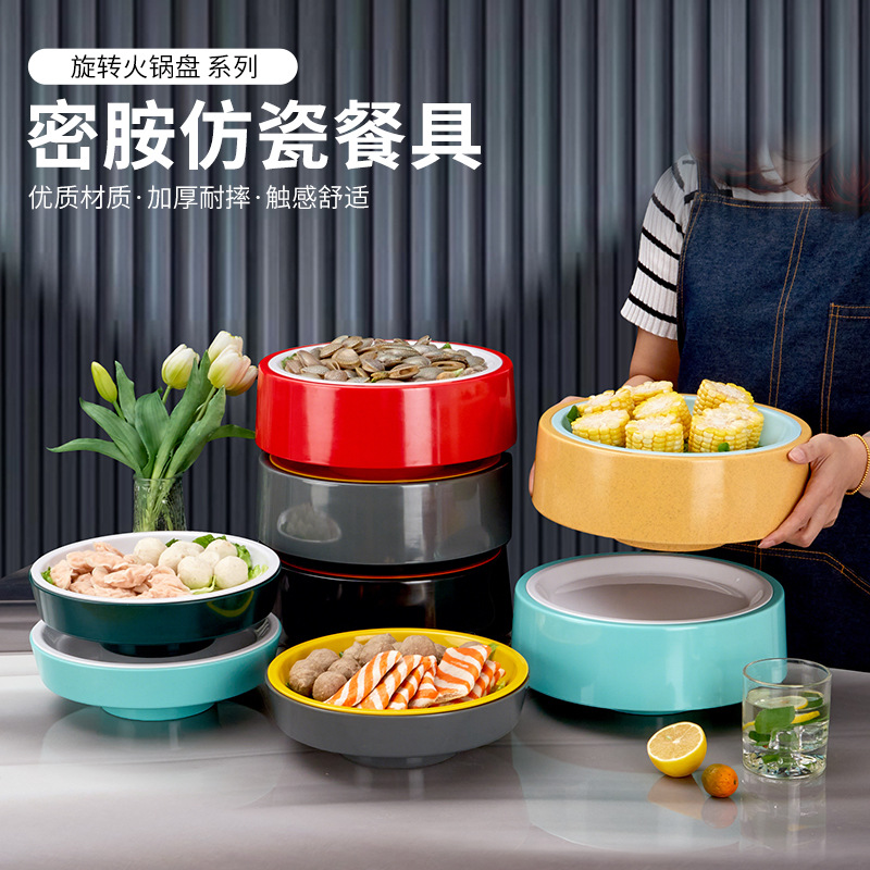 Melamine Trendy Rotating Small Hot Pot Bowl Commercial Self-Service Hot Pot Dish Plate Turntable Display Plate Double-Layer Plate