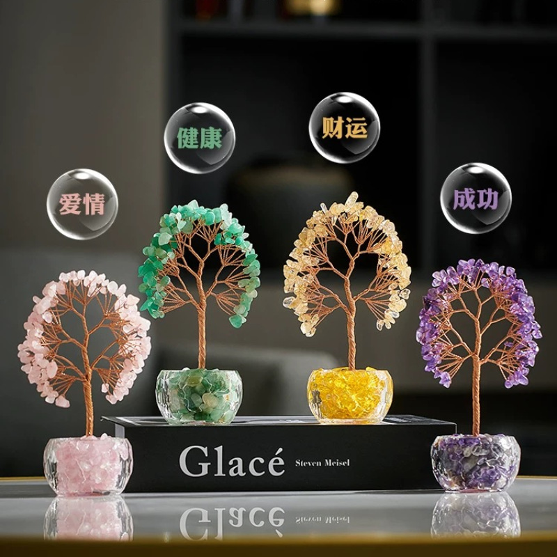 Natural Crystal Gravel Money Tree Diamond Bowl Base Cornucopia Crystal Tree Home Office Desk Decoration Ornaments