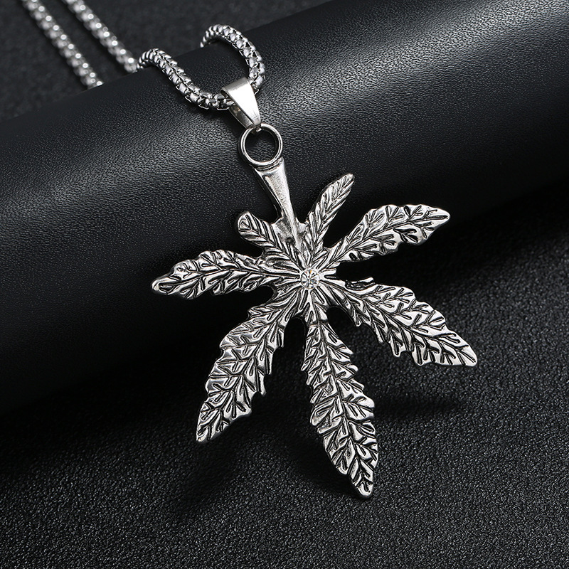 Casual Alloy Dot Diamond Maple Leaf Men's Necklace Versatile Student Trendy Personalized Clothing Accessories Retro Sweater Chain