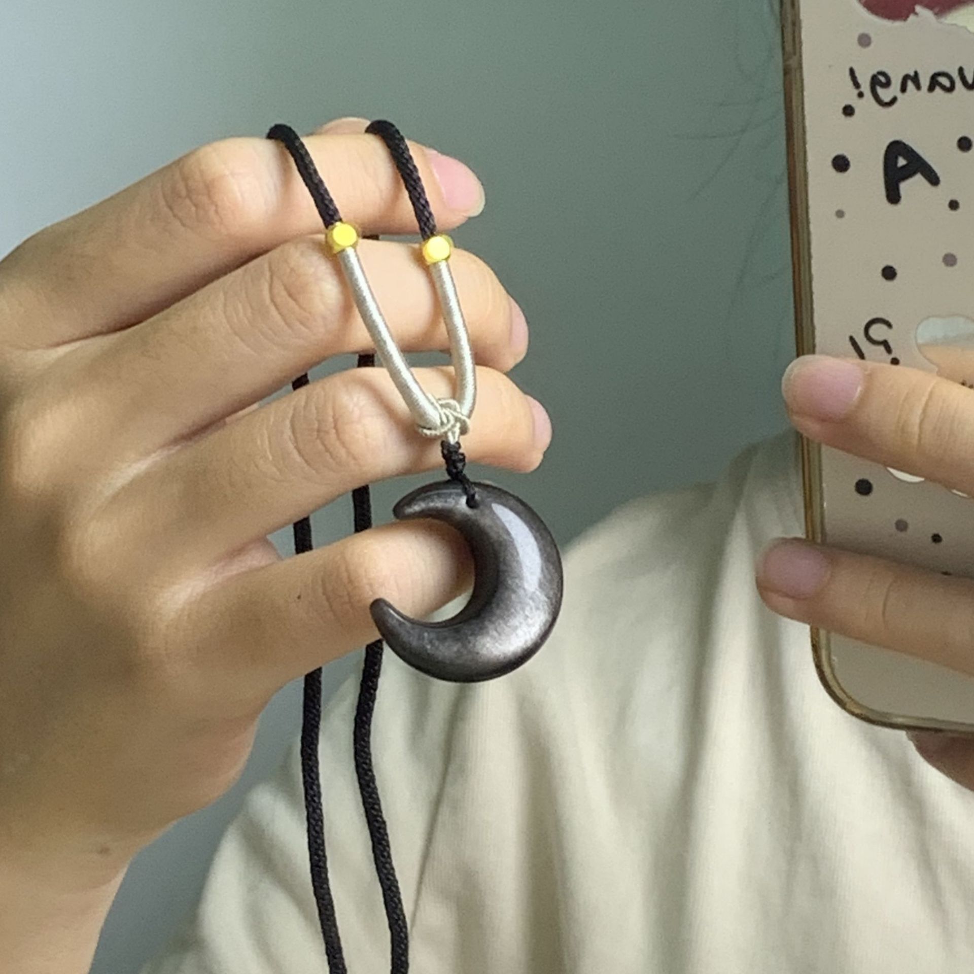 Natural Silver Obsidian Moon Necklace Women's New Chinese Style Couple's All-match Crescent Moon Pendant Vintage Rope Clavicle Chain for Men