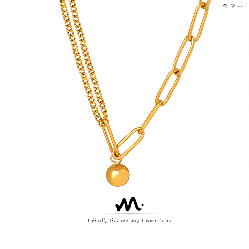 Ins small gold ball simple plain chain stitching titanium steel real gold niche does not fade hip-hop personality men's and women's necklace