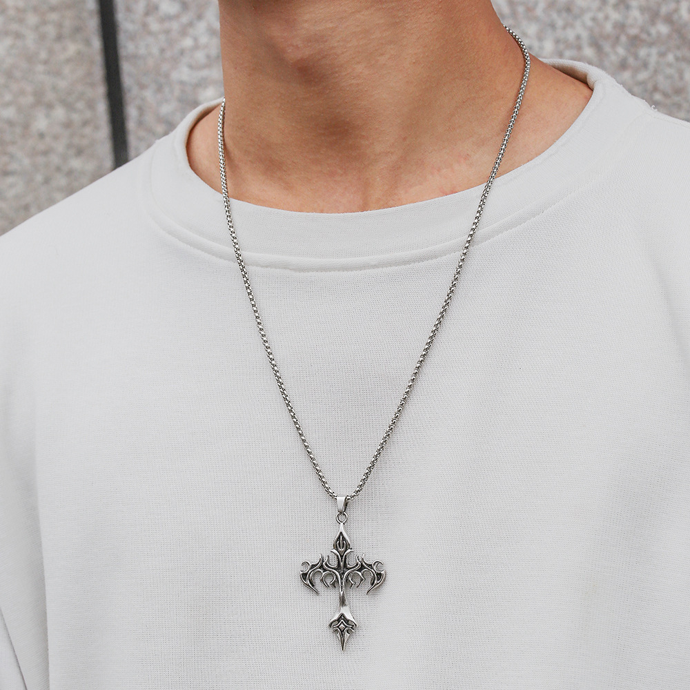 Cross-Border Hot Selling Flame Cross Totem Retro Stylish Retro Pendant Necklace Men's Pendant Accessories Jewelry