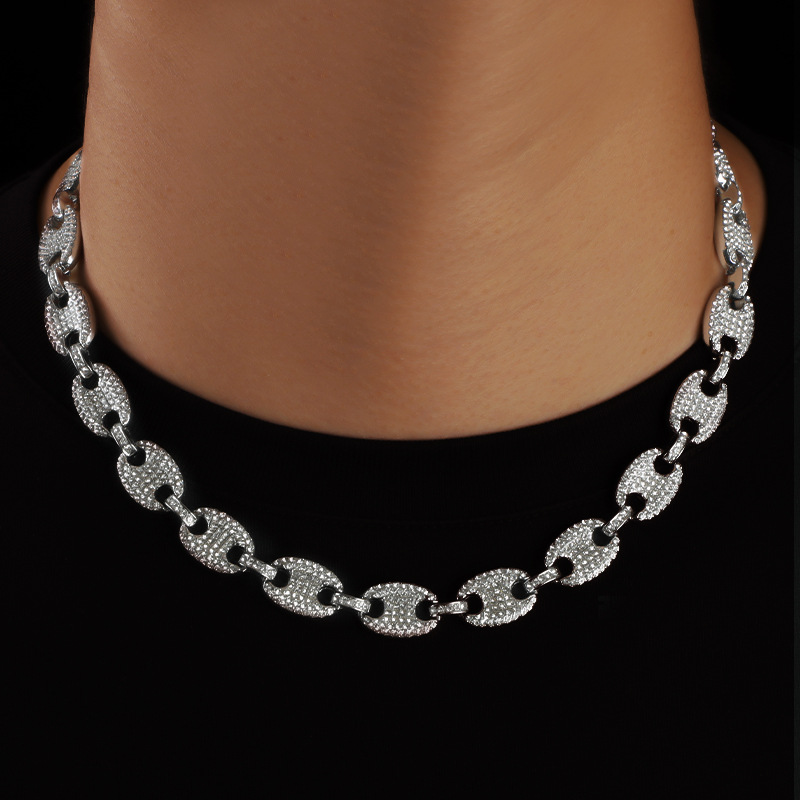 Cross-Border Jewelry New Coffee Bean Diamond Men's Necklace European and American Trendy Retro Street Hip-Hop Cuban Pendant