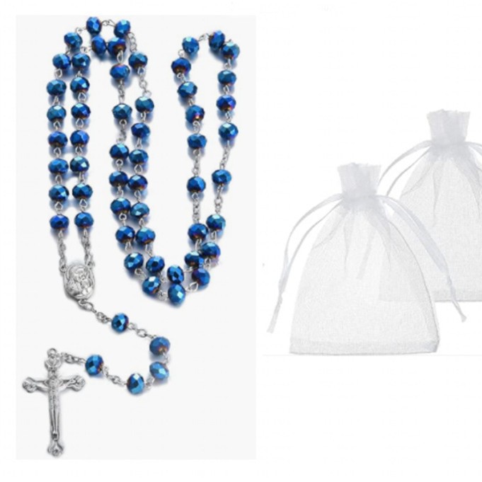 Cross-Border Foreign Trade Communion Alloy Virgin Long Rosary Necklace Crystal Necklace Rosary Baptism Set Men and Women Gifts
