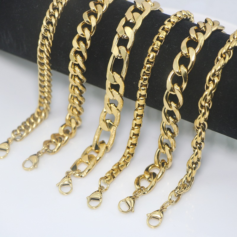 Cross-Border European and American Gold Bracelets Hip-Hop Trendy Personality Men's and Women's Stainless Steel Cuban Chain Thick Bracelets Wholesale
