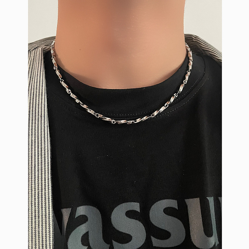 Six Rock Pillar Men's Necklace Hip Hop Trendy Brand Fashion All-match Plagi Handsome Design Sense Female Niche Jewelry Titanium Steel Necklace Trendy