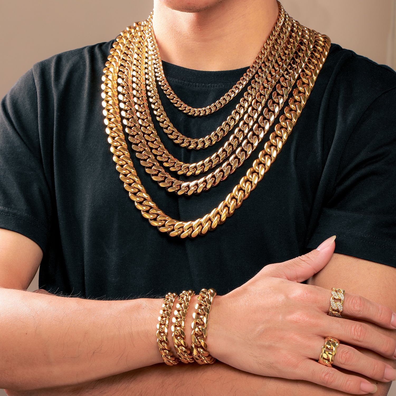 Stainless steel keel necklace 2-5mm wholesale titanium steel 18K gold flower basket chain does not fade necklace thick chain men's jewelry