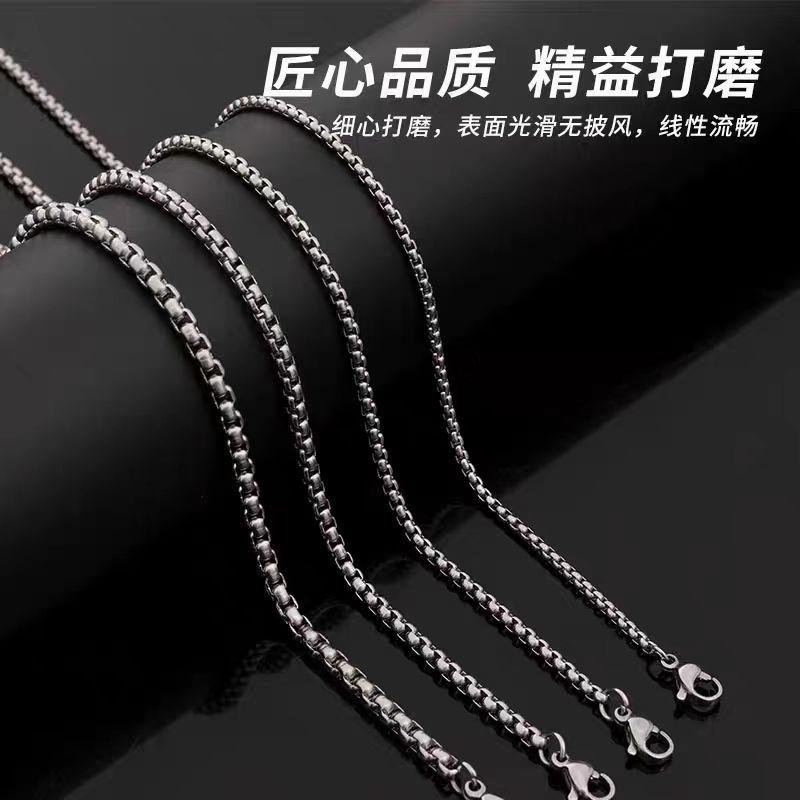 Stainless steel square pearl fashion simple jewelry with chain plain chain manufacturers wholesale titanium steel corn chain men's and women's items