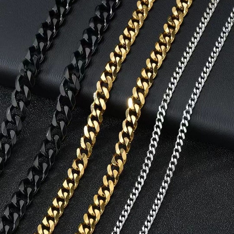 Cross-border couple stainless steel double-sided grinding Cuban chain jewelry men's titanium steel chain hip hop fashion necklace gift box suit