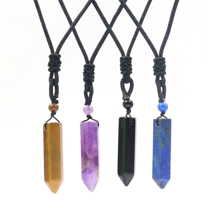 Natural Crystal Hexagonal Column Braided Pendant Necklace Obsidian Hexagonal Prism Necklace New Necklace Jewelry for Men