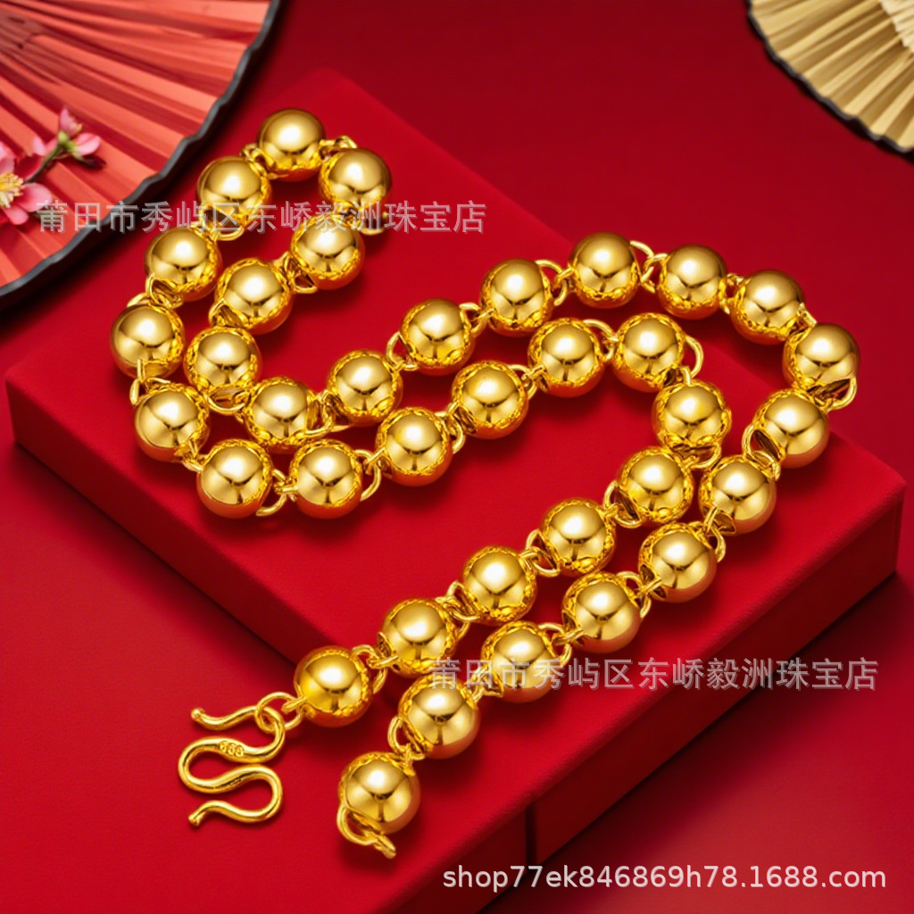 Gold Shop 1:1 Same Style Vietnamese Sand Gold Solid Light Beads Round Beads Buddha Beads Necklace Gold-Plated Men's Solid Necklace