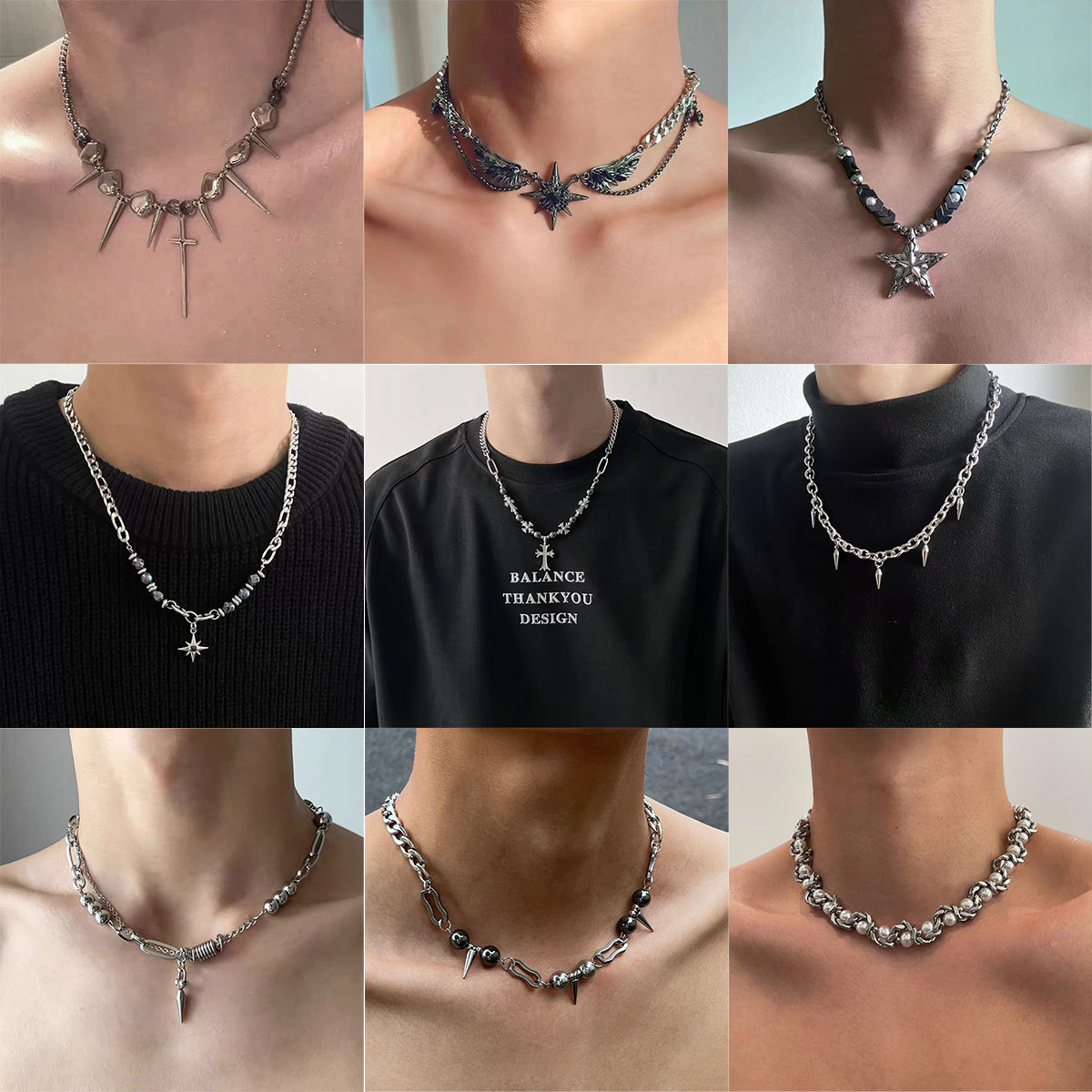 Six Rock Pillar Men's Necklace Hip Hop Trendy Brand Fashion All-match Plagi Handsome Design Sense Female Niche Jewelry Titanium Steel Necklace Trendy