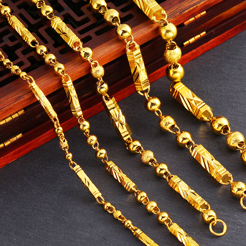 Vietnam sand gold necklace men's hexagonal beads solid chain does not fade imitation gold copper accessories new cross-border