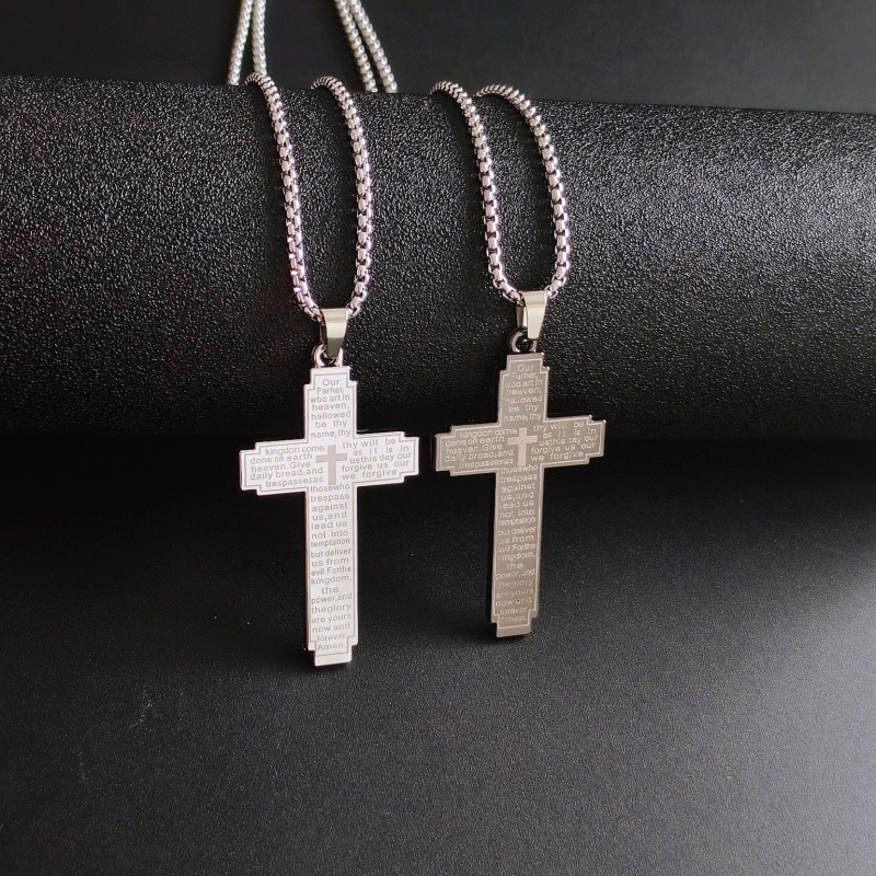 Cross-Border European and American Best-Selling Bible Cross Stainless Steel Necklace Men's Niche Hip-Hop Retro Jewelry Cross-Border Supply