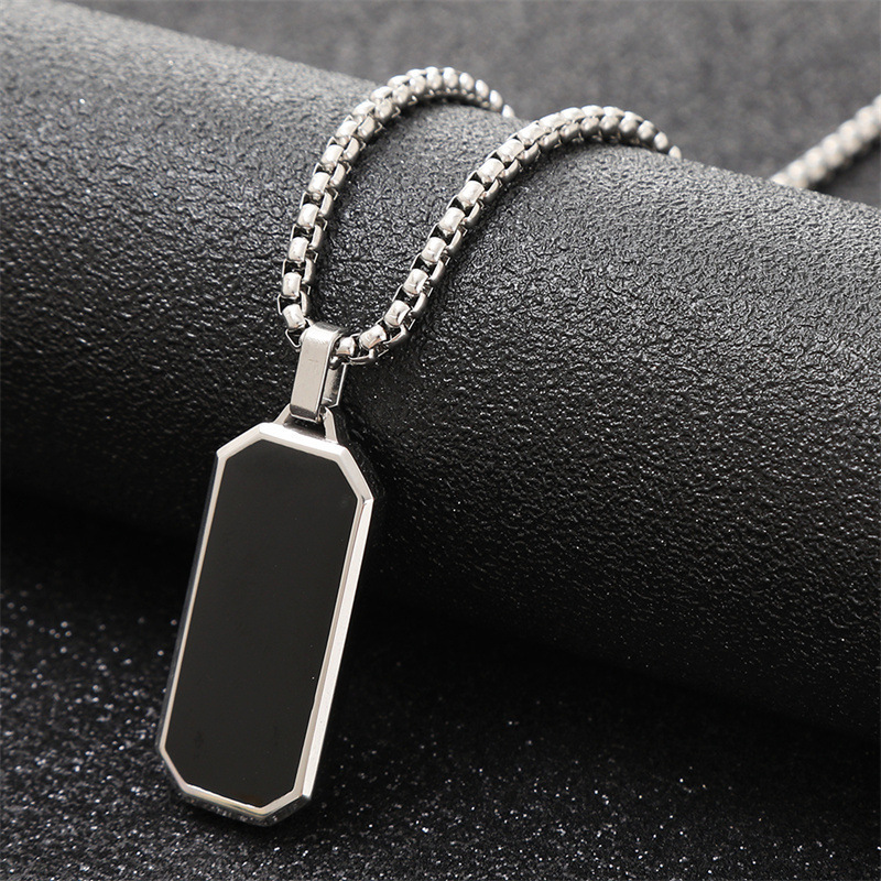 Amazon Cross-border Hot Selling European and American Men's Titanium Steel Necklace Personalized Simple Black Oil Dropping Stainless Steel Pendant Accessories