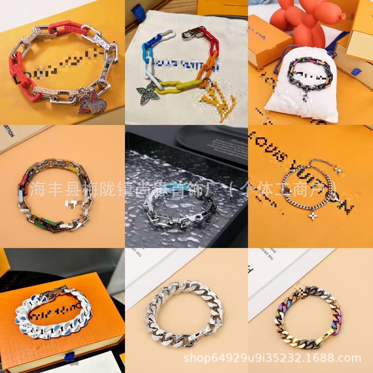 L&V European and American Trendy Brand Bracelet Jewelry Painted Titanium Steel Letters Hip-Hop Style Cuban Chain Men's Wholesale Factory Direct Sales
