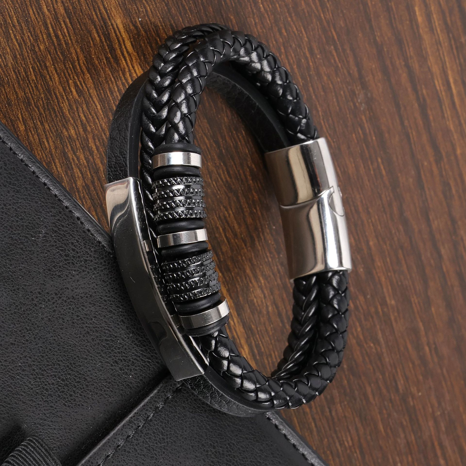 Amazon's New Braided Leather Rope Men's Leather Bracelet Personalized Fashion Titanium Steel Accessories Magnetic Buckle Bracelet Wholesale