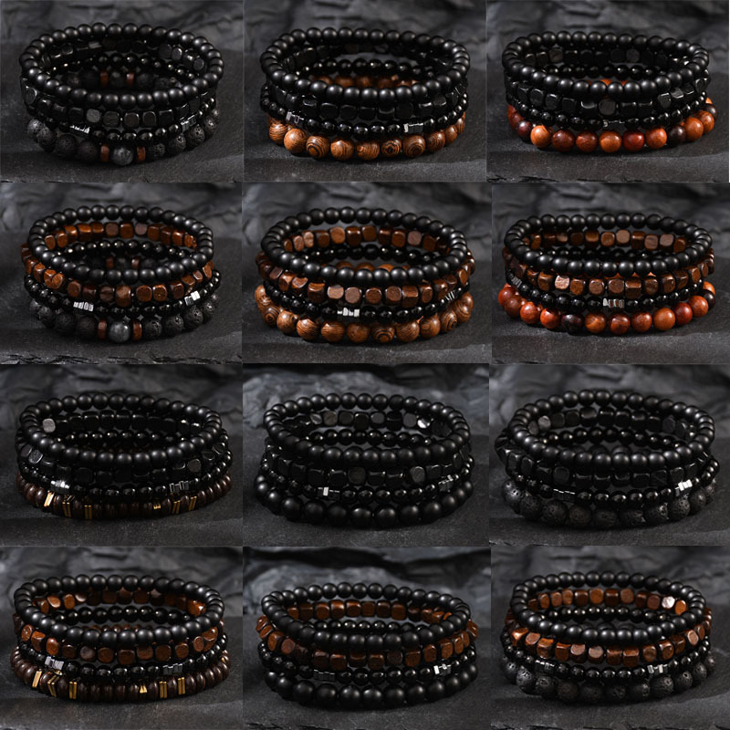 Cross-border new 4/set of volcanic stone wooden beads bracelet hematite beads men's multi-piece suit bracelet