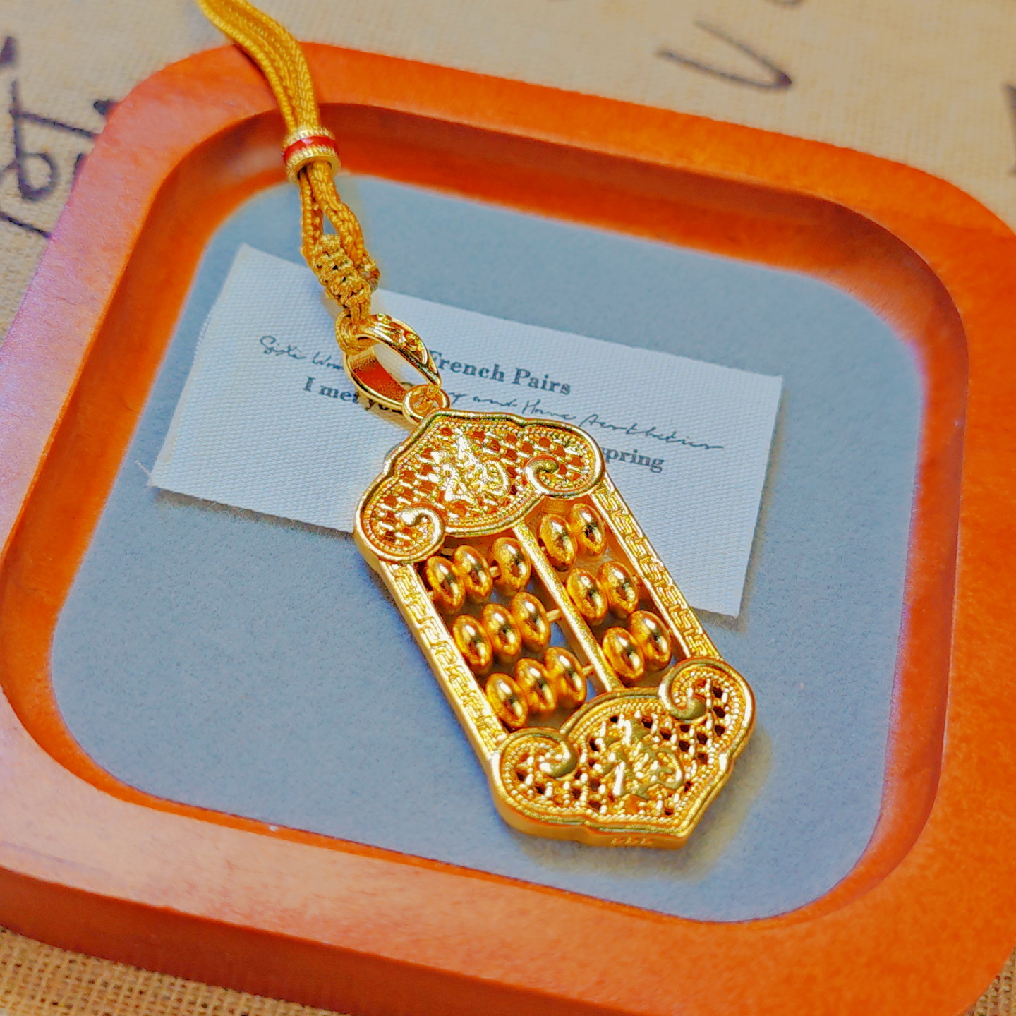 [Accepting Dropshipping] Copper Gold-Plated Fortune Character Abacus Pendant, Chinese-Style Abacus Pendant for Men and Women, Couple Pendant