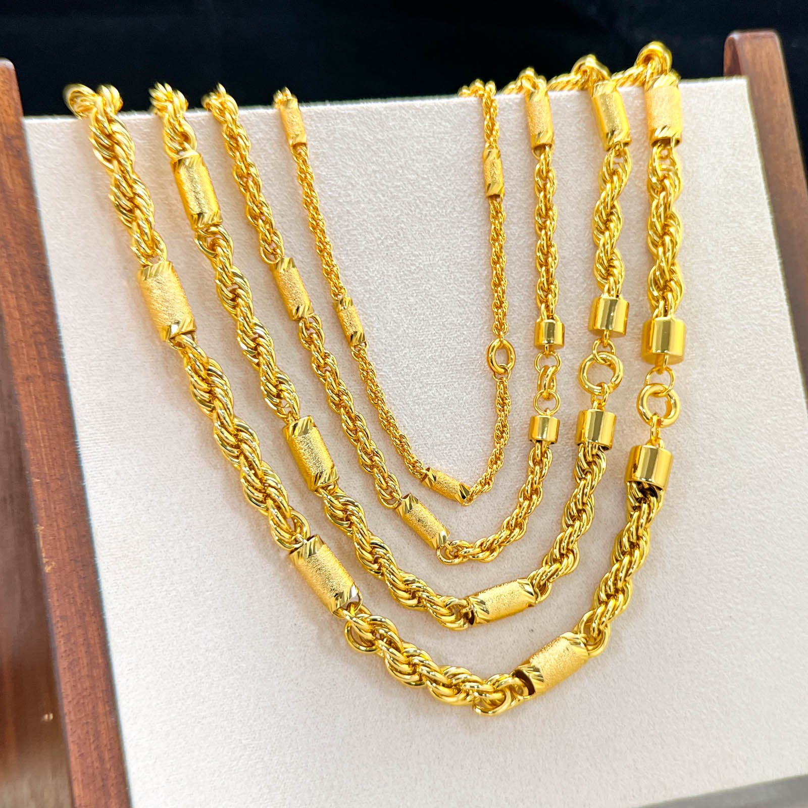 Shake the Sound boss domineering gold pure hexagonal necklace does not fade sand gold 24k gold collarbone men's atmospheric gold necklace