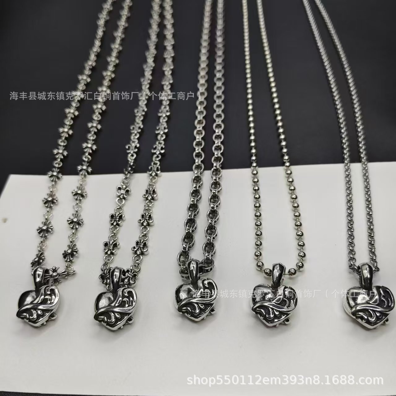 Ch Trendy Brand Retro Heart-Shaped Pendant Thai Silver Unisex S925 European and American Sweater Chain Hip-Hop Style Direct from Manufacturer