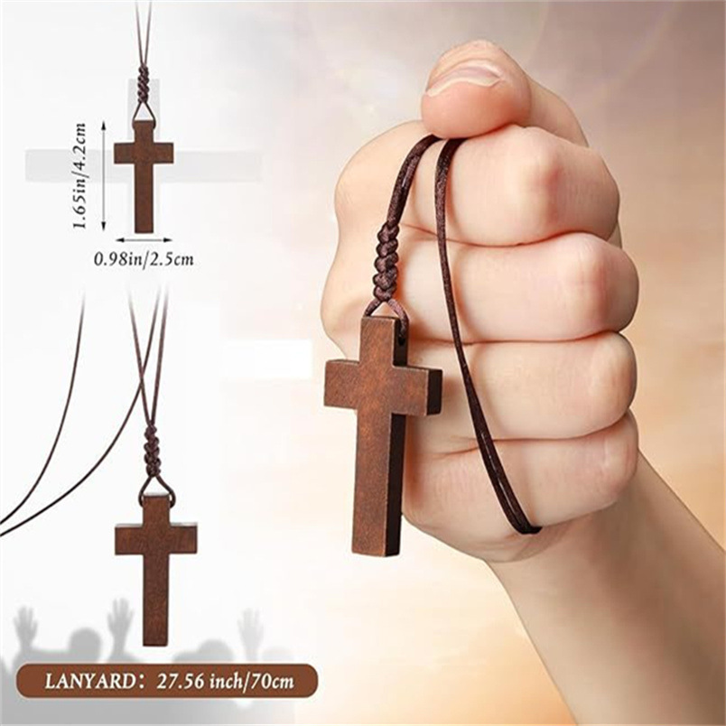 DIY Handmade Knot Adjustable Harajuku Wooden Retro Cross Pendant Necklace Men's and Women's Jewelry