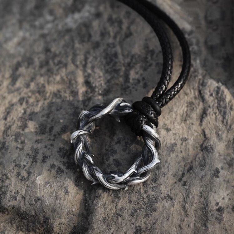 Retro pure s999 Silver Thorn necklace men's pendant men's high-grade retro design sense niche dried vine
