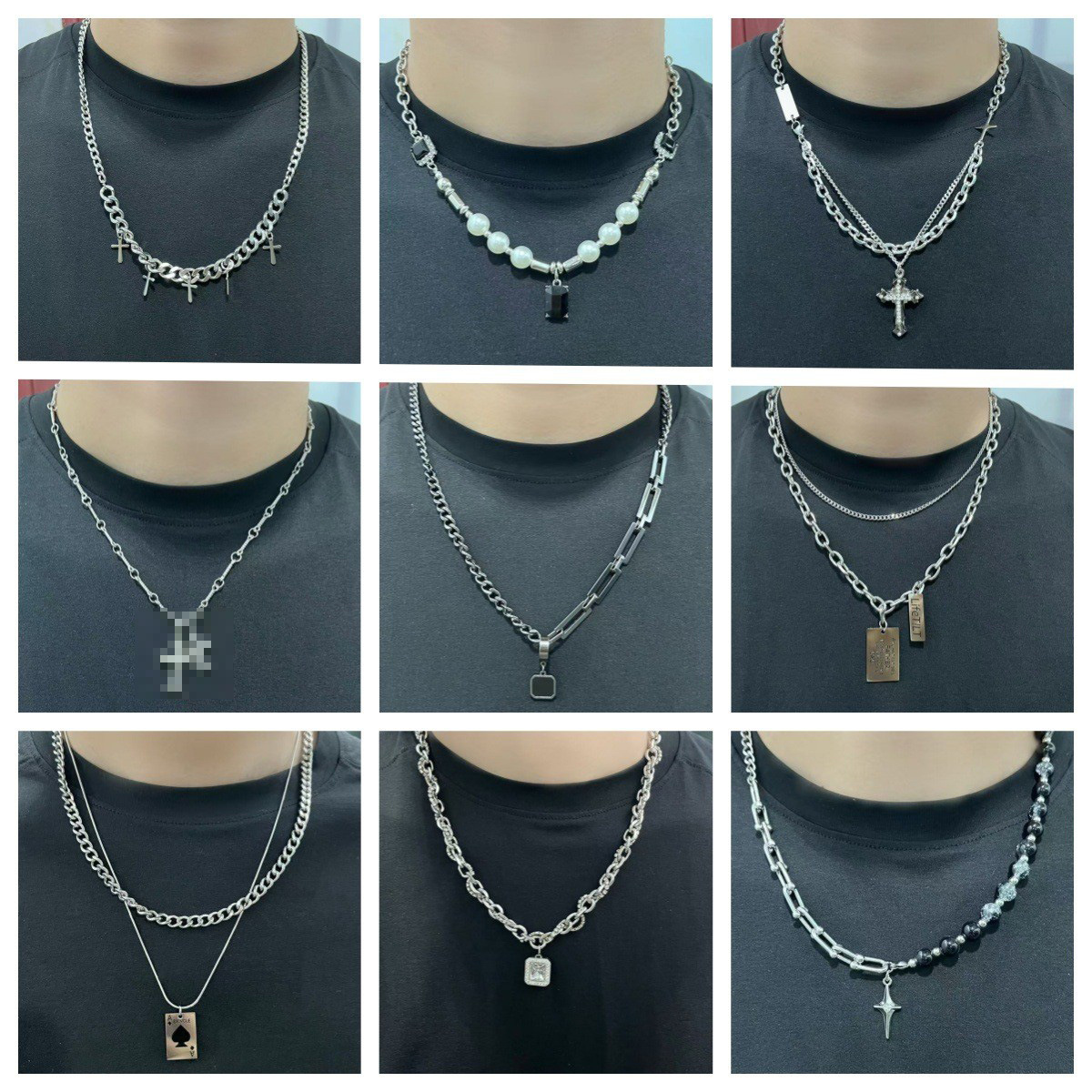 Vintage All-match Hip-hop Titanium Steel Necklace Men's Couple's Cross Pendant Sweater Chain Non-fading Street Accessories Women's Fashion