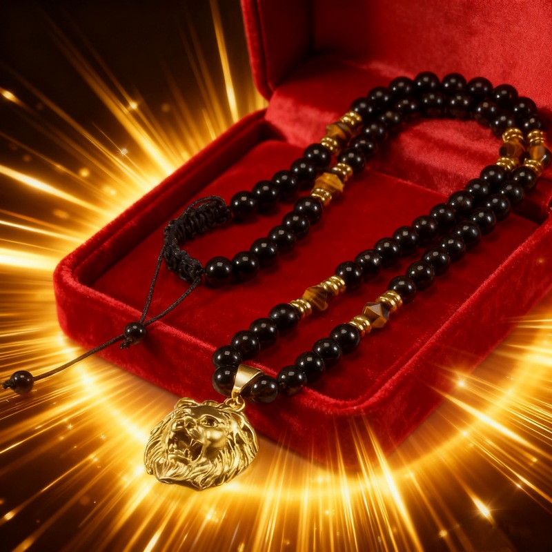 Cross-Border Amazon Temu Men's Domineering Lion Necklace Natural Tiger Eye Stone Pendant Gift