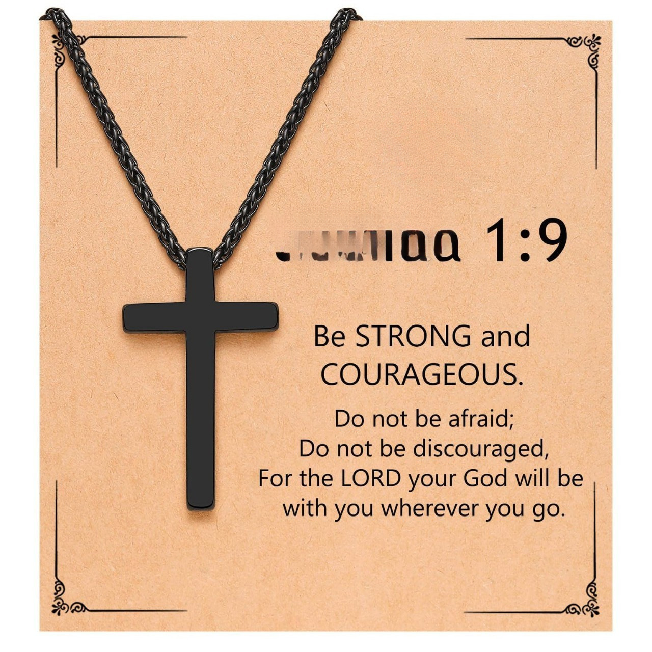 Tk/Amazon Cross-Border Popular Men's Boy Black and White Cross Necklace Birthday Gift Stainless Steel Chain