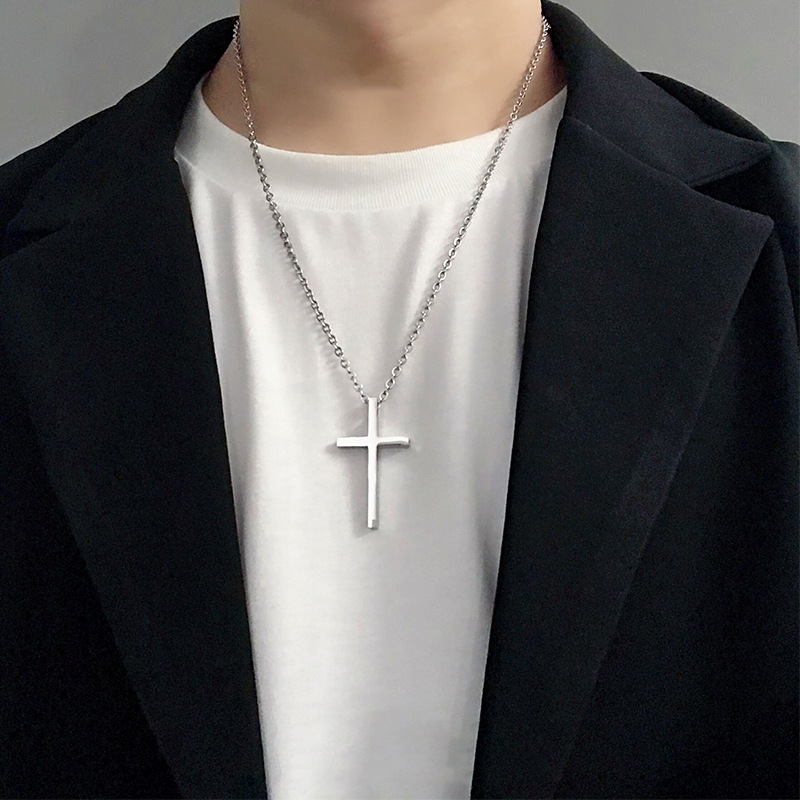 Amazon cross-border popular fashion simple cross necklace stainless steel religious Hip Hop couple pendant necklace for men