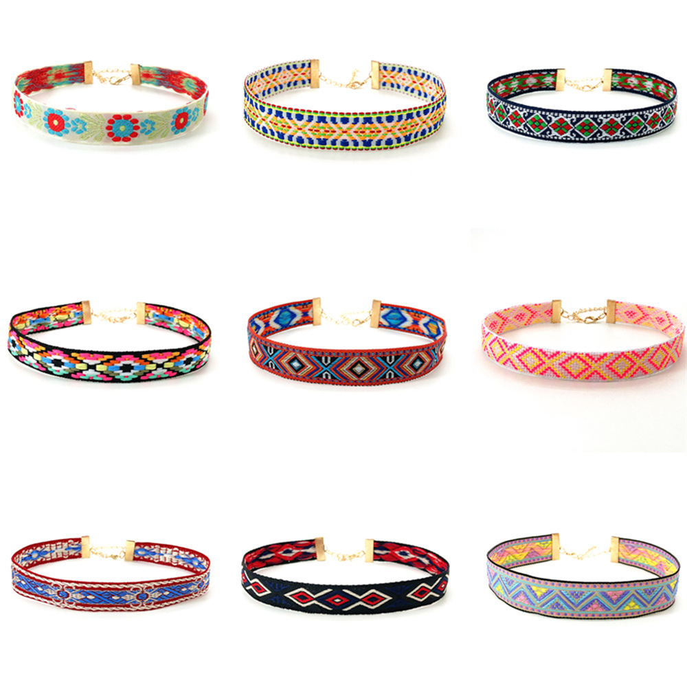 AliExpress cross-border seven-color ethnic style bohemian short chain necklace necklace Women's Chinese style jewelry men's wholesale