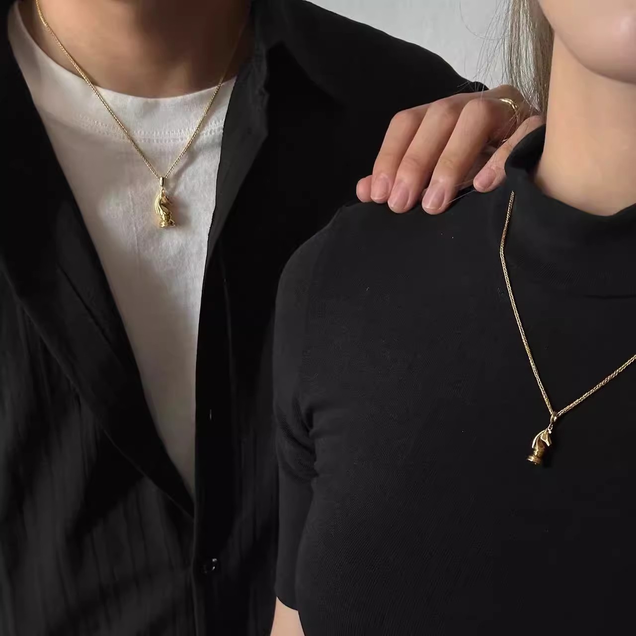 Xiaohongshu Popular Chess Horse Pendant for Men and Women, Niche Design, High-End Light Luxury Trendy Cool Clavicle Chain, One-Piece Drop Shipping