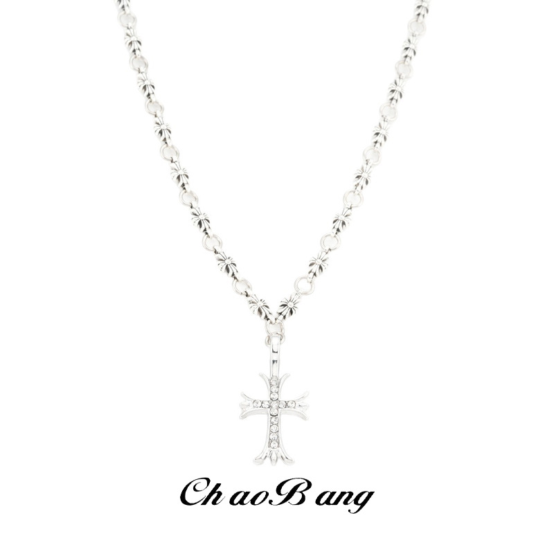 Crow White Gold Diamond Cross Titanium Steel Necklace Men's Trendy Fashion Retro High-End Personalized Design Bracelet Women