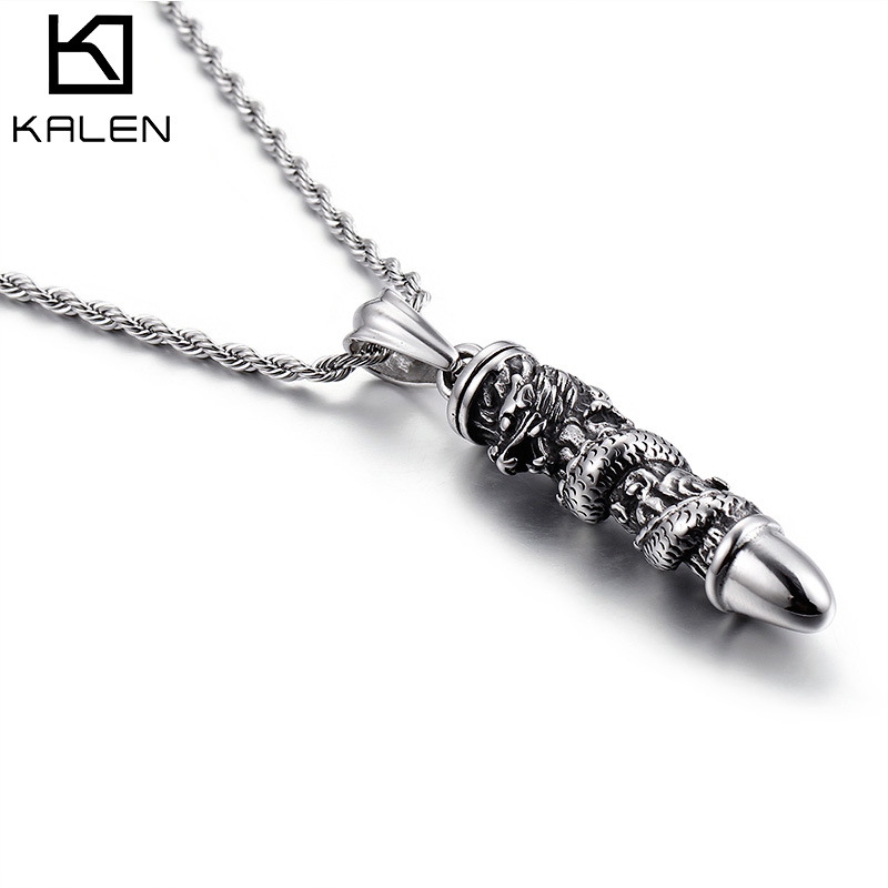 Men's Aggressive Casting Bullet Necklace Fashionable Titanium Steel Dragon Pillar Pendant Pendant for Men's Jewelry