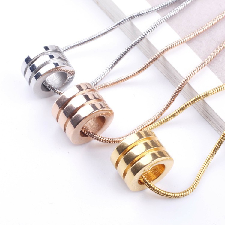 European and American Cross-border Simple All-match Small Waist Titanium Steel Necklace Men's Cylindrical Transfer Bead Pendant Color-free Snake Bone Chain Women
