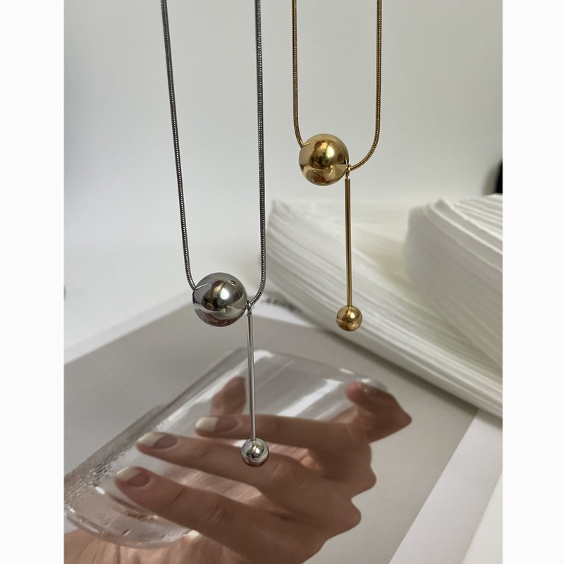 South Korea Dongdaemun three-dimensional geometric ball titanium steel necklace jewelry women's simple Joker pendant cold wind men's wholesale