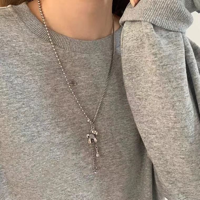 Instant Money Flower ~ Retro Stitching Necklace Women's Ins Hip-Hop Distinctive Street All-Match Simple Long Woolen Chain for Men