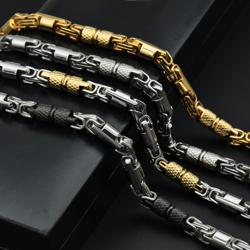 Dianyi Jewelry King Chain Necklace Cross-Border Jewelry European and American Foreign Trade Jewelry Stainless Steel Byzantine Necklace for Men
