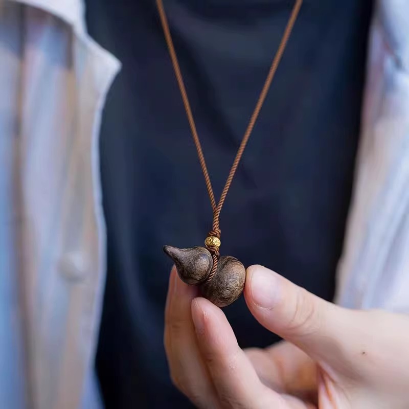 Natural high quality Chinan Agarwood Gourd Pendant Men's and Women's Fulu Double Full Lucky Transfer Necklace New Year Gift