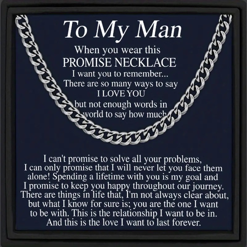 1pcs To my man Personalized Trendy Men's Cuban Chain Dense Chain Stainless Steel Chain Necklace with Card