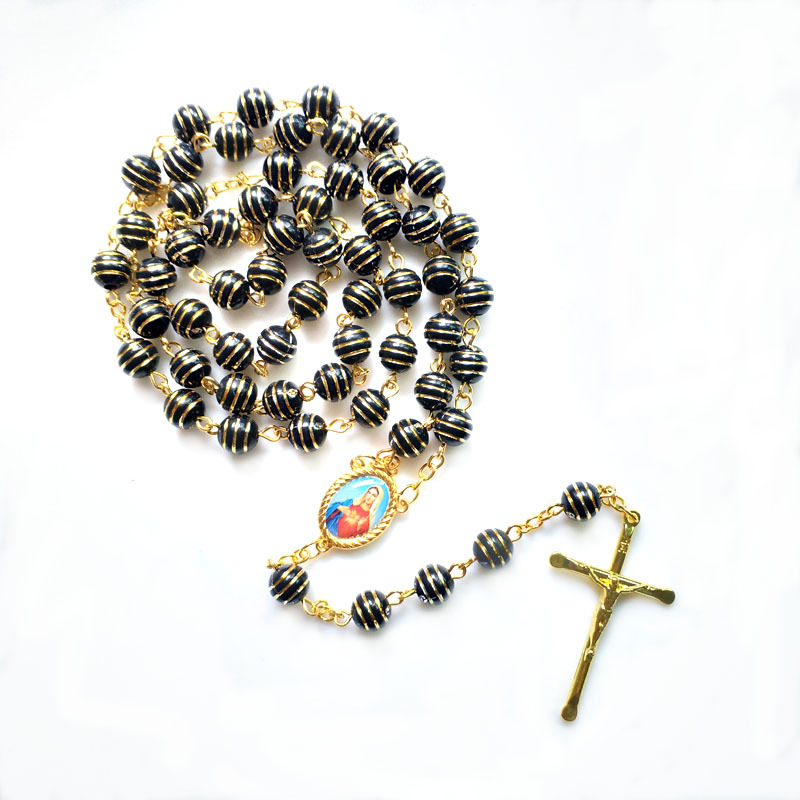 AliExpress Jewelry Simple Golden Retro Bead Chain Cross Necklace Black Striped Men's and Women's Clothing Necklace