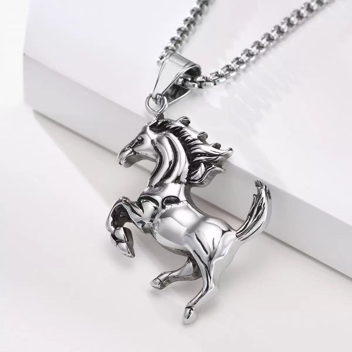 2025 European and American hip-hop fashion personality trend standing horse stainless steel necklace hanging ornaments for men and women manufacturers