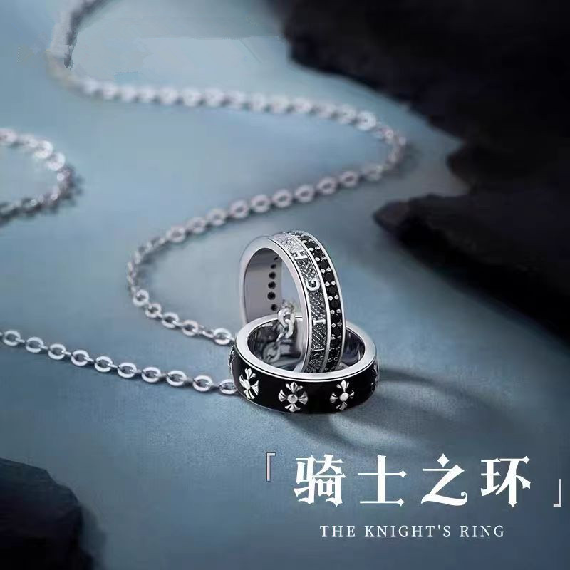 Double-Ring Titanium Steel Men's Necklace Stainless Steel Pendant Non-Fading European and American Jewelry Wholesale Versatile Personalized Jewelry Trendy Men